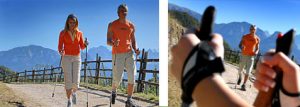 Le nordic walking est un sport pour jeunes et moins jeunes. A l’origine, il a été introduit comme entrainement d’été pour les skieurs de fond finlandais et pour les biathlètes. Le nordic walking est apprécié comme variante du jogging. Beaucoup d’hôtels du sud Tyrol – que ce soient les hôtels randonnée, les hôtels sport et les hôtels nordic walking – proposent à leurs hôtes des circuits nordic walking guidés et des cours ainsi que du prêt de matériel, de façon à ce que vous puissiez vraiment apprécier vos vacances sportives. Informez-vous sur les offres correspondantes auprès de votre hôtel nordic walking du sud Tyrol.